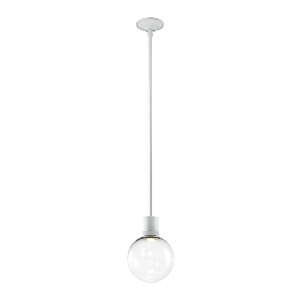 8" High End Clear Glass Globe Shade Pendant Light in Our Chic Matte White Finish with Detailed Diamond Knurled Metal Band. Integrated Replaceable LED with 3CCT 3000K, 3500K and 4000K.