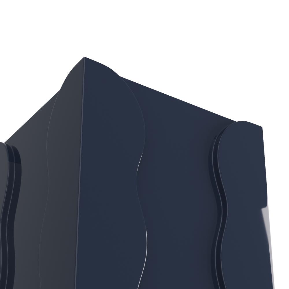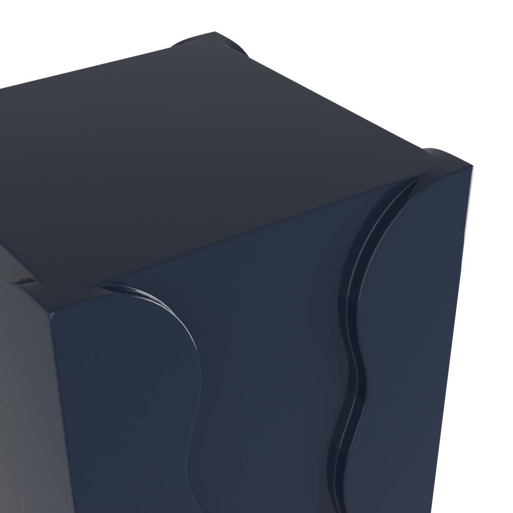 The bold colors and playful geometric shapes of the 1980s find a contemporary revival in our luxe lacquered design. Each sleek side is enhanced with a “squiggle”-edged layer for visual interest. Finished in navy lacquer, it is padded at the bottom for durability.