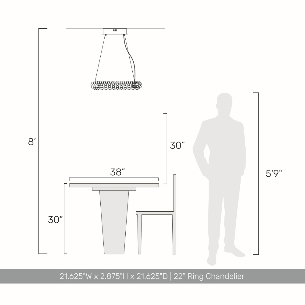Embrace nature-inspired luxury with the Ziva by Golden Lighting Corallo Integrated LED 22in Chandelier. Designed with an intricate arrangement of hand-selected green fluorite stones, this chandelier brings the essence of ocean treasures into your home. The unique turquoise hue provides a soft, ethereal glow, transforming any space when lit. Ideal for dry locations, this piece enhances dining rooms, foyers, and living spaces with its captivating presence. Easily adjustable in height and compatible with sloped ceilings, it fits seamlessly into any environment. With overall dimensions of 21.63"W x 2.88"H x 21.63"D, enjoy brilliant, energy-efficient illumination with integrated LED technology, offering 4540.38 rated lumens at a 3000K color temperature. Elevate your home's decor with this stunning chandelier that balances natural beauty with modern functionality.