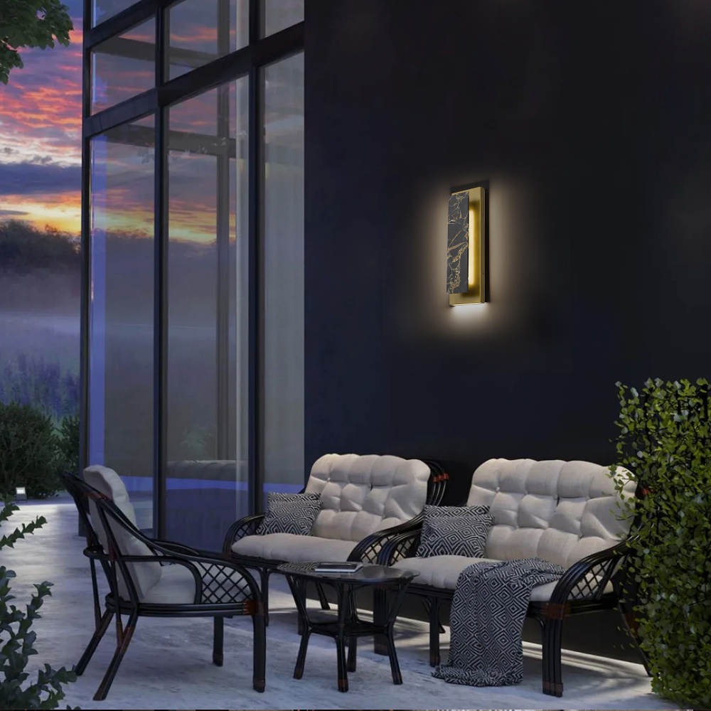 The Zoey LED Wall Sconce showcases a striking blend of natural black and gold marble, enhanced by a captivating backlit design that exudes sophistication and glamour. Its elegant construction not only creates a stunning visual statement but also provides functional downlighting for added versatility. Perfect for both interior and exterior spaces, this exquisite fixture is wet location rated, ADA compliant, and features 3-CCT customizable lighting with dimming capabilities, ensuring tailored illumination for any setting.