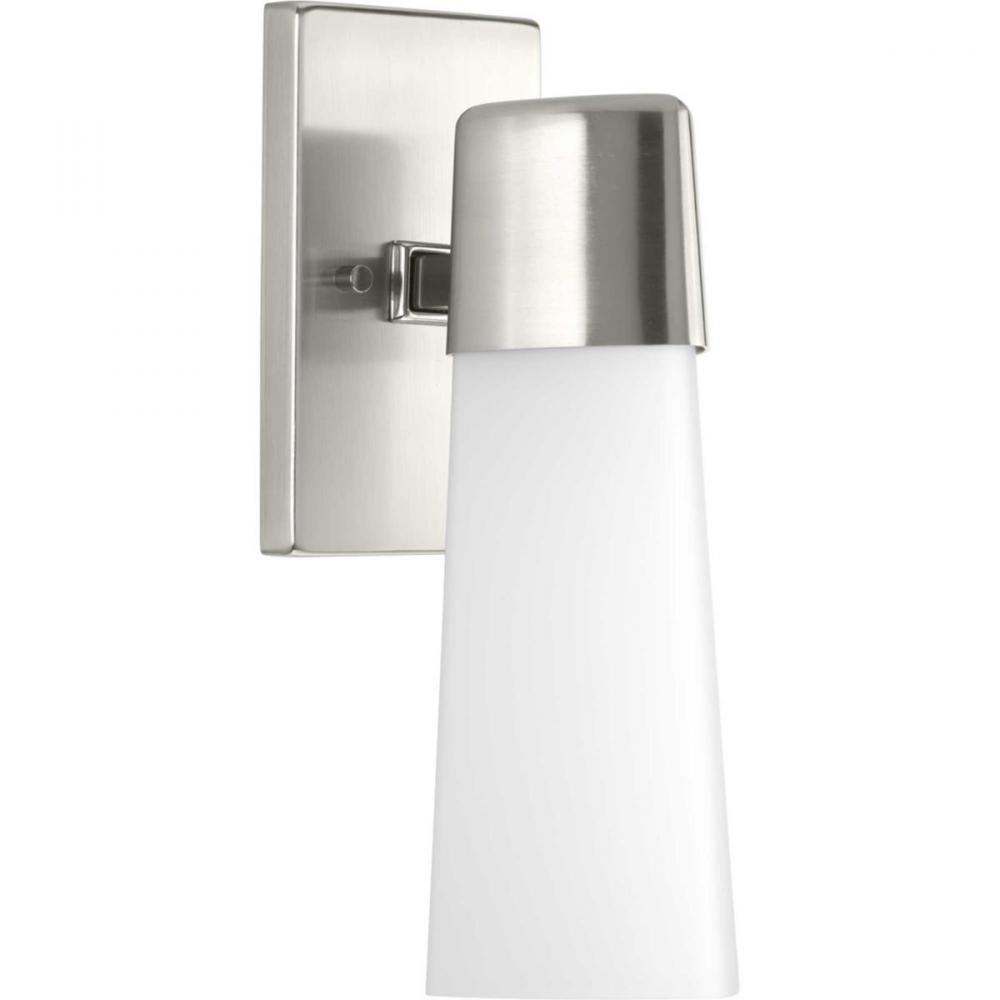 Ideal for a bathroom;Perfect for modern and transitional style settings;Beautiful brushed nickel finish;Elegant etched opal glass shade;Mount the light fixture facing up or down;Use 1 medium base bulb that is sold separately (100 W max - LED/CFL/incandesce