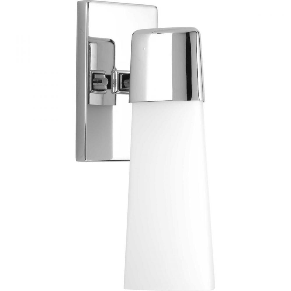 Ideal for a bathroom;Perfect for modern and transitional style settings;Crisp polished chrome finish;Elegant etched opal glass shade;Mount the light fixture facing up or down;Use 1 medium base bulb that is sold separately (100 W max - LED/CFL/incandescent)