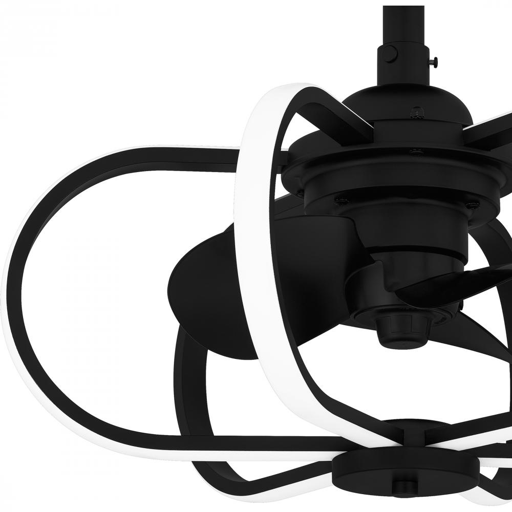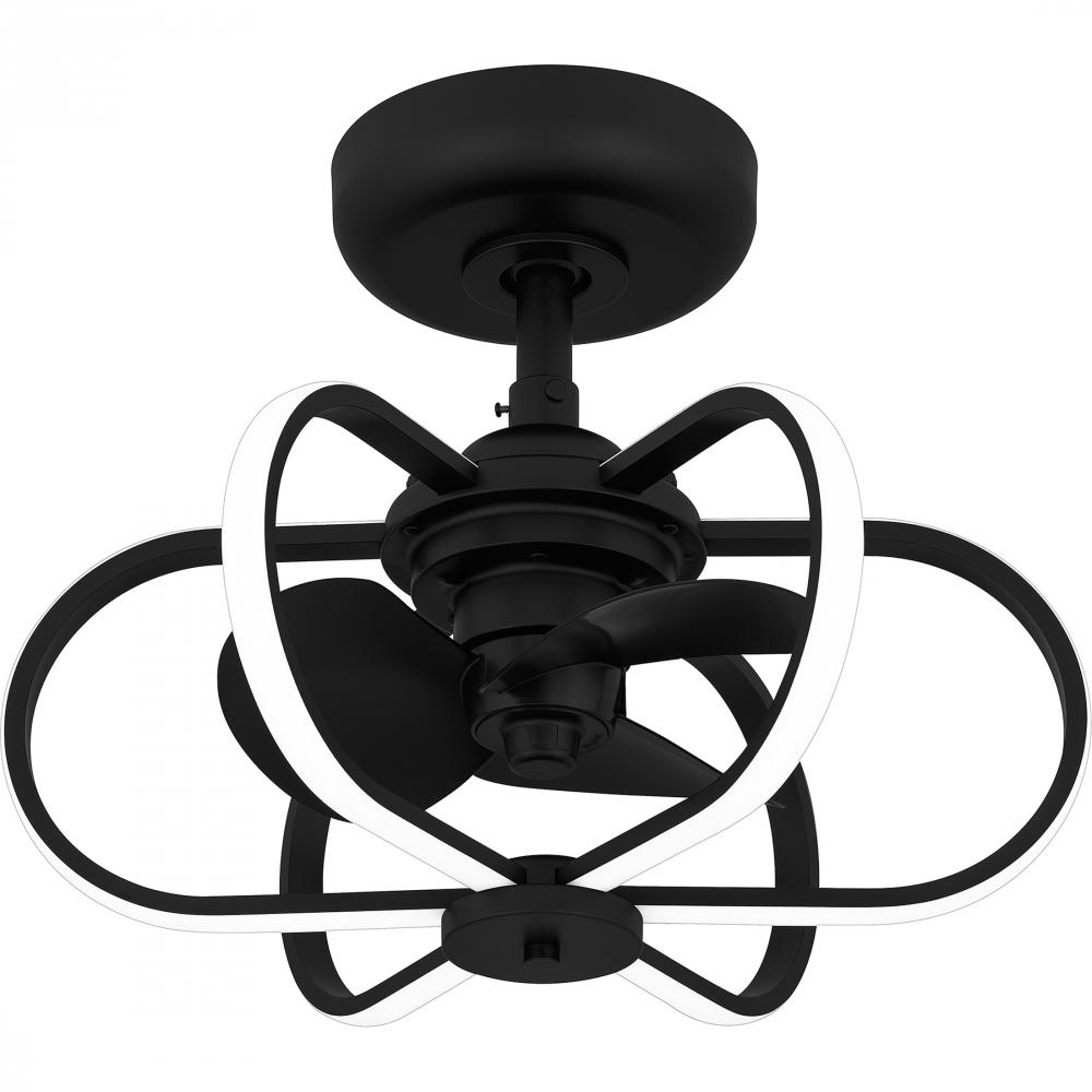 With a striking silhouette and bold, clean lines, the Zuri ceiling fan light combines the air flow of a ceiling fan with an integrated LED light source provided by a chandelier. The matte black frame pairs effortlessly with the three fan blades, accentuate